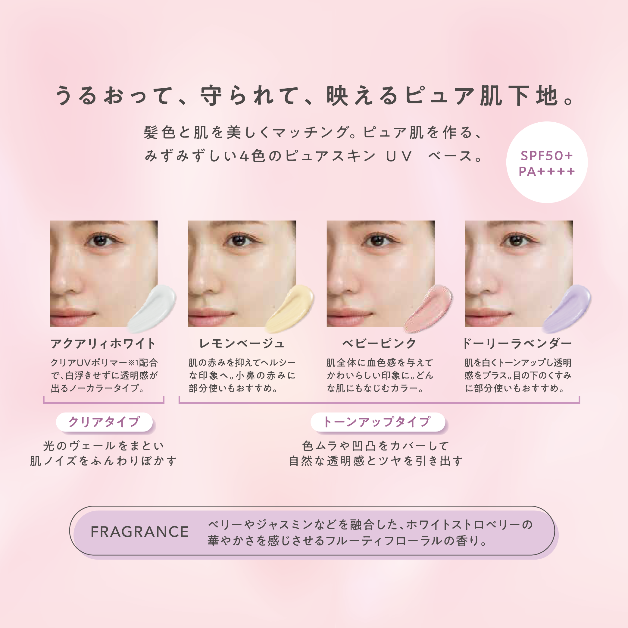 ピュア肌を作る、みずみずしい4色のピュアスキンUVベース。
