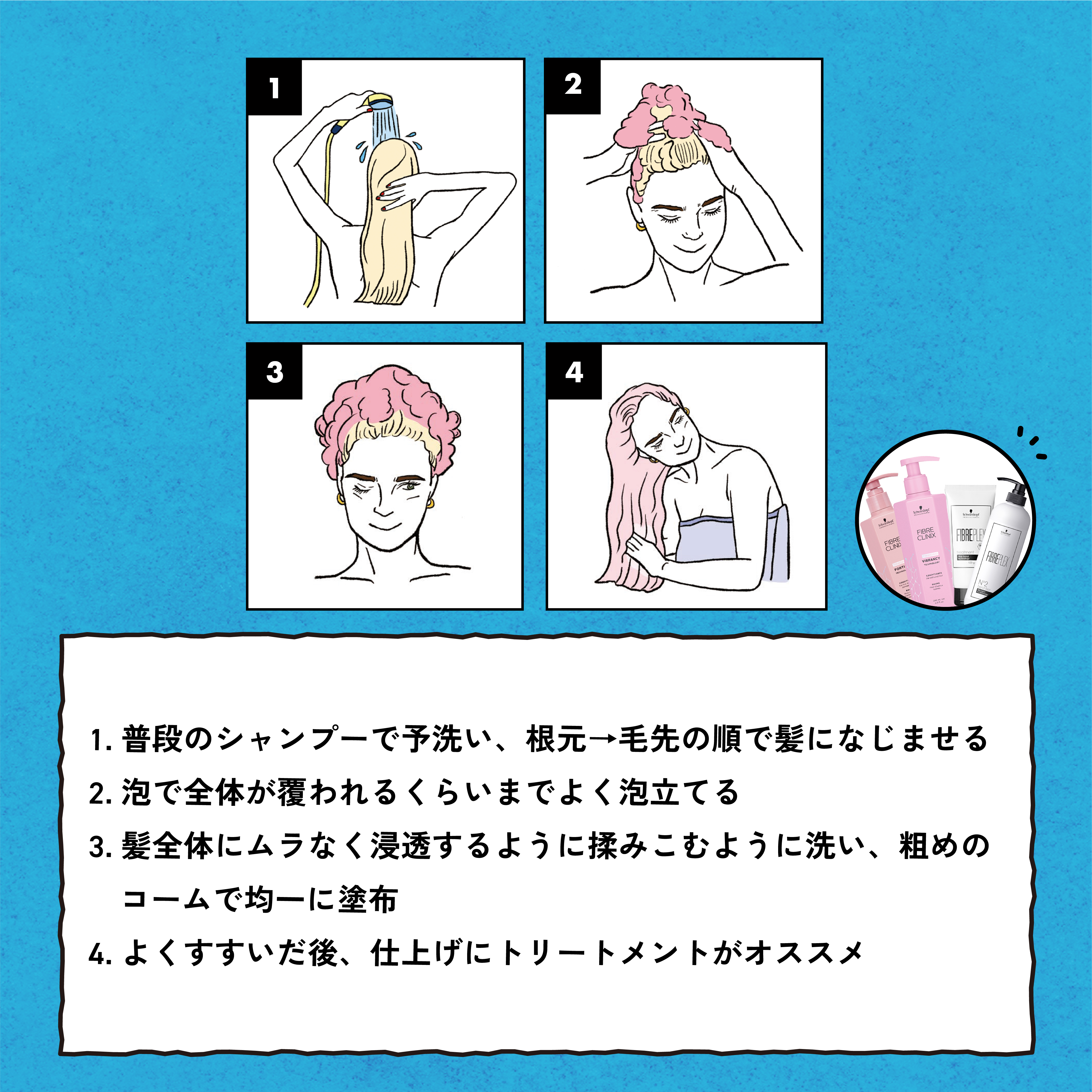 →中~高明度の明るい髪色に使用することで高発色の色素を定着させるカラーシャンプー