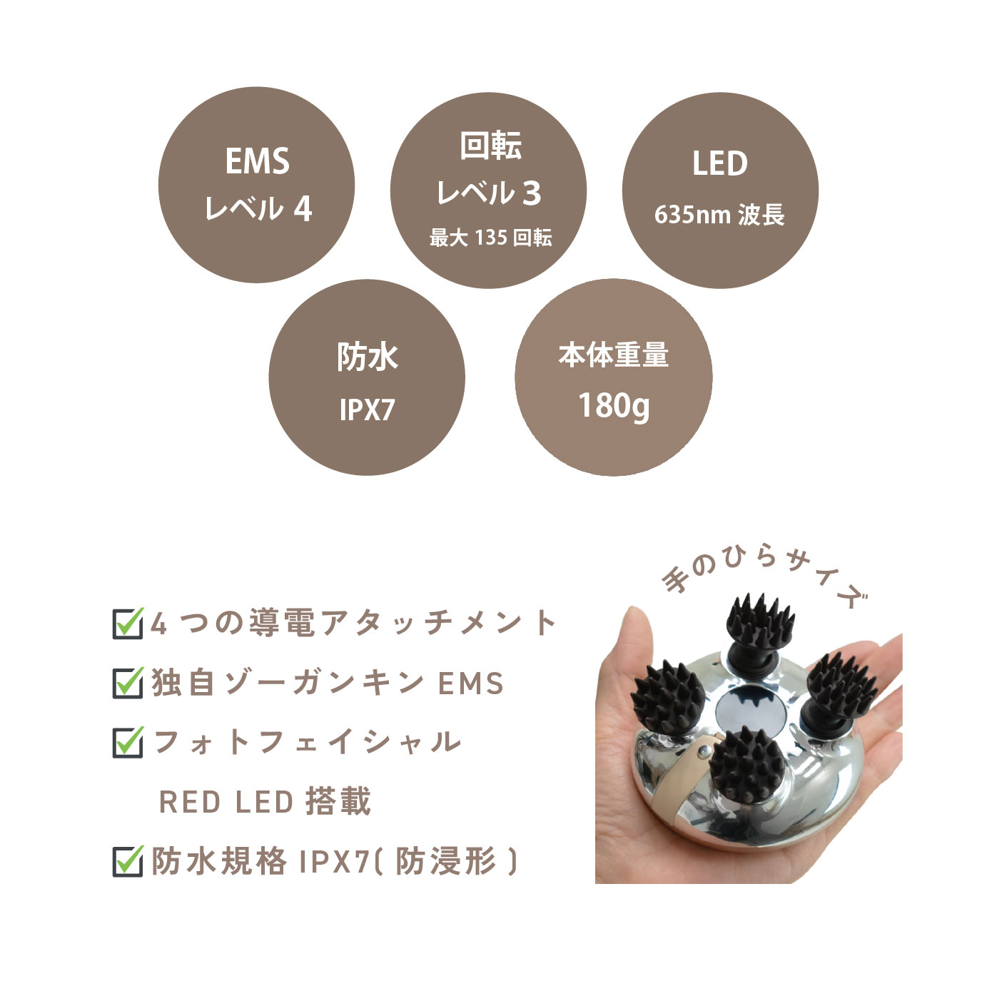 2. 電導アタッチメントを頭皮に軽くあて、ゆっくり動かします