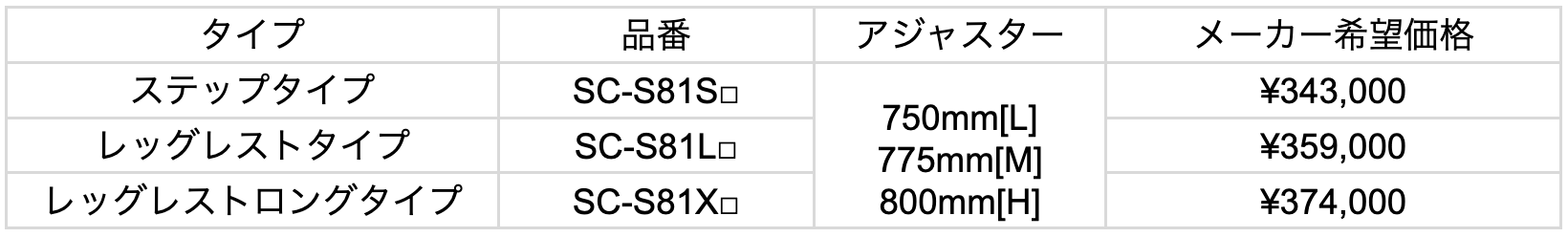 ※品番の□にはアジャスタータイプが入ります。 ※レザー(標準)NL5の場合。 ※標準のSHレザー(SH15、SH24)は¥15,000アップ。