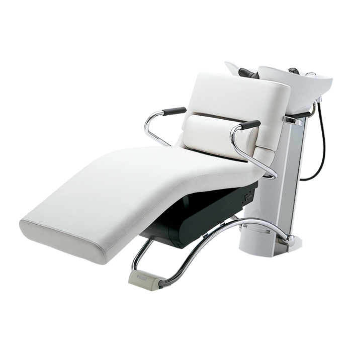 エルゴノミクス(=人間工学)の考え方を追求したリアシャンプー機器。チェア動作は無段階のフル電動で、様々な体型のお客様にぴったりとフィットします。