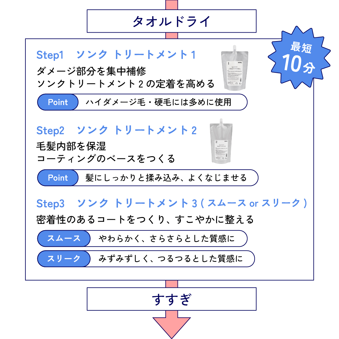 (トリートメント1→ジェル/トリートメント2→リキッド/トリートメント3→クリーム)