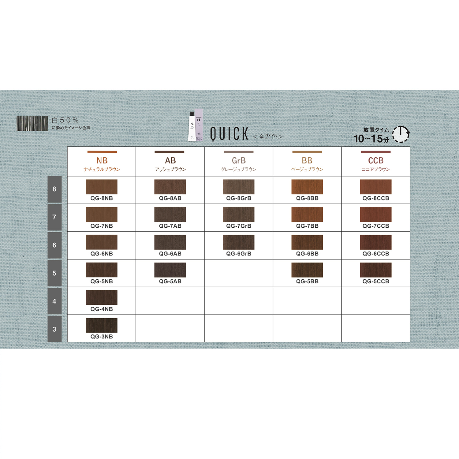 5種類の和草エキスによるボタニカルリフレッシャー効果でヘアカラー特有の気になるにおいを抑え、施術中のストレスを軽減。シアバターをはじめとする天然由来成分の効果で毛先までみずみずしい仕上がりに。10分というおもてなし。気になるグレイカラーを素早く染める、時間価値を生み出す新たな選択。